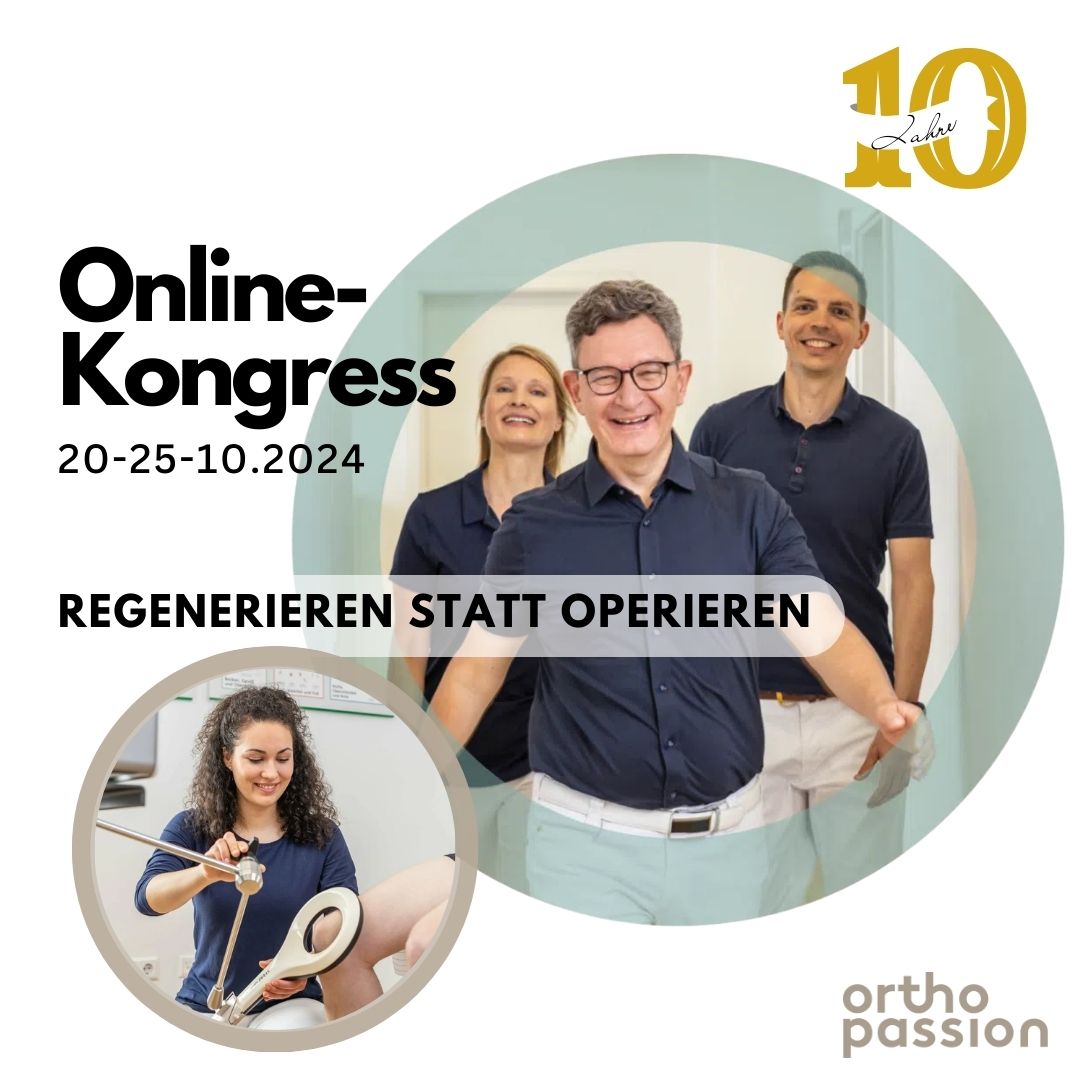 Vom 20. bis 25. Oktober 2024 laden wir Sie herzlich zu unserem Online-Jubiläumskongress ein. In diesen sechs Tagen erwarten Sie hochqualitative medizinische Vorträge rund um regenerative Orthopädie, Osteopathie, Sportmedizin und vieles mehr.